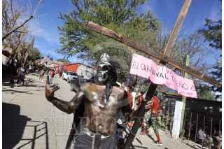 SAN MARTÍN TILCAJETE, OAXACA, 21FEBRERO2023.- Este martes en la comunidad de San Martín Tilcajete, municipio ubicado a 28 kilómetros de la ciudad de Oaxaca, celebran su tradicional carnaval, en donde los diablos aceitados salen a hacer sus últimas travesuras antes del inicio de la Cuaresma; los habitantes de esta localidad zapoteca se pintan con aceite de motor quemado y aceite vegetal dando cumplimiento así a una tradición de más de un siglo de antigüedad. FOTO: CAROLINA JIMÉNEZ/CUARTOSCURO.COM