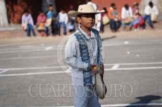 ERONGARICUARO, MICHOCÁN, 21FEBRERO2023.- Alumnos de la escuela primaria Sevangua de la comunidad indígena de Jaracuaro, celebraron el carnaval Purépecha, donde los niños y docentes vestidos a la usanza tradicional de los pueblos indígenas de la región, desfilaron por las principales, calles acompañados de las musica tradicional de la región. FOTO: JUAN JOSÉ ESTRADA SERAFÍN/CUARTOSCURO.COM