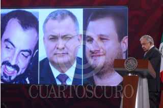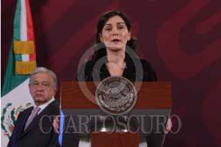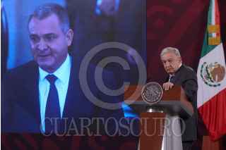 CIUDAD DE MÉXICO, 22FEBRERO2022.- Andrés Manuel López Obrador, presidente de México, encabezó conferencia de prensa matutina en Palacio Nacional, en la que habló sobre la resolución del juicio de Genaro García Luna, ex secretario de Seguridad Pública. El presidente estuvo acompañado de: Elizabeth García Vilchis, directora de Redes de la Coordinación General de Comunicación Social y Vocería de Presidencia. FOTO: MARIO JASSO/CUARTOSCURO.COM