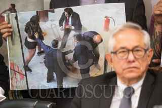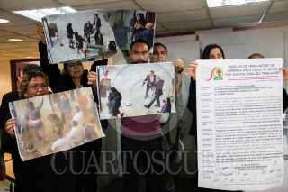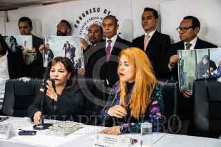 CIUDAD DE MÉXICO. 22FEBRERO2023.- Este medio día en el área de comunicación social del Comgreso de la Ciudad de México; la diputada Gabriela Quiroga y la lider Sindical Georgina Pacheco, los diputados locales Jorge Gaviño y Victor Hugo Lobo, en conferencia de prensa demandaron lesiones a los miembros de seguridad y resguardo del recinto legislativo por parte de activistas el día de ayer. FOTO: VICTORIA VALTIERRA/CUARTOSCURO.COM
