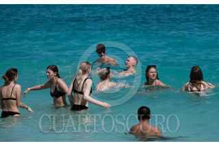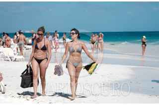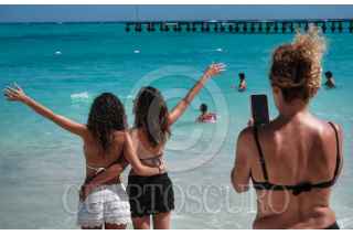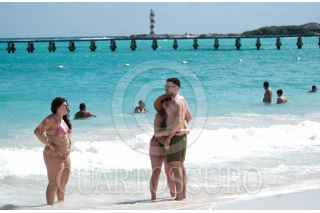 CANCÚN, QUINTANA ROO, 22FEBRERO2023.- Turistas disfrutan del buen clima y del mar libre de sargazo en Playa Caracol. FOTO: ELIZABETH RUÍZ /CUARTOSCURO.COM
