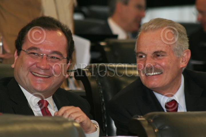 MÉXICO, D.F. 22MARZO2007.- Los legisladores Pablo Gómez, PRD y Amira Griselda Gómez, PRI durante la sesión en la Cámara de Senadores. FOTO: PAOLA HIDALGO/CUARTOSCURO.COM