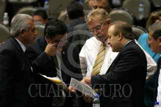 MÉXICO, D.F., 22MARZO2007.- Los diputados Javier Murillo Flores, PAN, Sergio Hernández, PRD, Javier González Garza, PRD y Benjamín González Roaro, PAN, durante la sesión en la que se aprobó la Ley del ISSSTE, en la Cámara de Diputados. FOTO: MOISÉS PABLO/CUARTOSCURO.COM