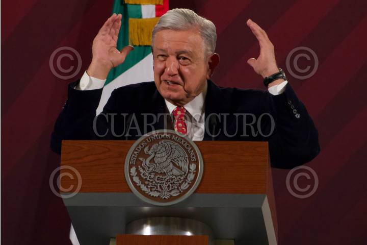 CIUDAD DE MÉXICO, 24FEBRERO2023.- Andrés Manuel López Obrador, presidente de México, durante la conferencia matutina desde el Salón Tesorería de Palacio Nacional. FOTO: ROGELIO MORALES /CUARTOSCURO.COM