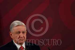 CIUDAD DE MÉXICO, 24FEBRERO2023.- Andrés Manuel López Obrador, presidente de México, durante la conferencia matutina desde el Salón Tesorería de Palacio Nacional. FOTO: ROGELIO MORALES /CUARTOSCURO.COM