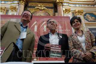 CIUDAD DE MÉXICO, 24FEBRERO2023.- El ingeniero y político Cuauhtémoc Cárdenas Solorzano en compañía de los magistrados del Tribunal Electoral del Poder Judicial de la Federación, Felipe de la Mata Pizaña y Janine Janine M. Otálora Malassis, presentó su libro “Por una Democracia Progresista” en el marco de la 44 Feria Internacional del Libro del Palacio de Minería. FOTO: GALO CAÑAS/CUARTOSCURO.COM