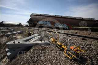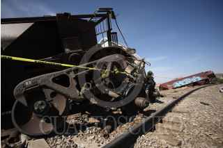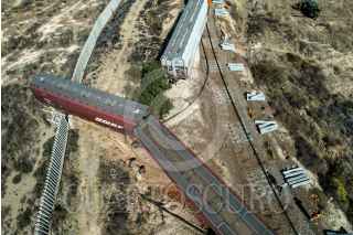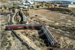 ZACATECAS, ZACATECAS, 25FEBRERO2023.- Tren se descarrila a la altura del Hospital General y cobra la vida de un trabajador, además de dos más lesionados. Alrededor de las 14:00 hrs por lo menos ocho vagones del tren de Ferromex se descarrilaron Justo cuando transitaban sobre una curva a la altura de la Fiscalía General de Justicia del Estado. Fue cuando salía de la zona conurbada Zacatecas, con dirección norte, al parece las reparaciones que se realizan en el lugar, provocó que varios vagones tronaran las vías y sallaran hacia su parte izquierda lesionando a por lo menos tres trabajadores que se encontraban realizando cambio de vigas de soporte. Lamentablemente uno de los trabajadores murió por las lesiones que provocó el accidente. Al lugar llegaron paramédicos de la Coordinación de Protección Civil Estatal y Cruz Roja Mexicana además de elementos de bomberos para ayudar a los demás trabajadores. FOTO: GENARO NATERA /CUARTOSCURO.COM