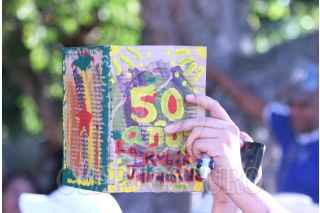 TEMIXCO, MORELOS, 25FEBRERO2023.- Como parte del proyecto de divulgación de la memoria histórica de la Colonia Proletaria Rubén Jaramillo se llevó a cabo la jornada "Repensando nuestro pasado" con el taller "Aprende a hacer tu libro cartonero" que llevo a cabo La Cartonera editorial de Cuernavaca con un libro del joven historiador Ricardo Yanuel Fuentes. También se llevó a cabo la Mesa de reflexión "La memoria y el presente" moderada por el sociólogo Víctor Hugo Sánchez Reséndiz, con la participación del profesor Atalberto Benítez, el abogado Jorge Viveros y Pedro Medrano, participantes de la invasión a los terrenos donde se fundó la colonia el 31 de marzo de 1973. Ese día decenas de campesinos, obreros y estudiantes encabezados por Florencio Medrano Mederos, "el Güero Medrano", invadieron los terrenos del fraccionamiento Villa de las Flores, propiedad del gobernador Felipe Rivera Crespo, donde se fundó la colonia que lleva el nombre del líder agrario zapatista Rubén Jaramillo. Durante seis meses la colonia se mantuvo hasta que fue ocupada el 28 de septiembre por militares y fuerzas civiles. El Güero Medrano pudo huir de la ocupación para después fundar el Partido Proletario Unido de América, guerrilla que opero en Oaxaca hasta su asesinato por guardias blancas el 26 marzo de 1979. Pedro Medrano, hermano del Güero Medrano y fundador de la colonia declaro que personal de la Comisión Nacional de Búsqueda se acercaron para ver la posibilidad de ubicar los cadáveres de sus hermanos Florencio y Primo Medrano Mederos y ser sepultados en la colonia que fundaron. FOTO: MARGARITO PÉREZ RETANA / CUARTOSCURO.COM