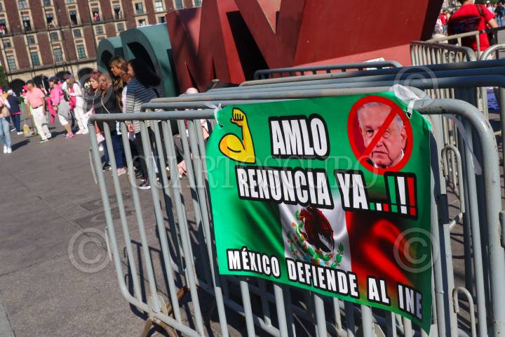CIUDAD DE MÉXICO, 26FEBRERO2023.- Ciudadanos se concentraron en el Zócalo para sumarse a la iniciativa #ElINENoseToca, un movimiento que se opone a cambios en el Instituto Nacional Electoral (INE) promovidos por el Ejecutivo. FOTO: MOISÉS PABLO/CUARTOSCURO.COM