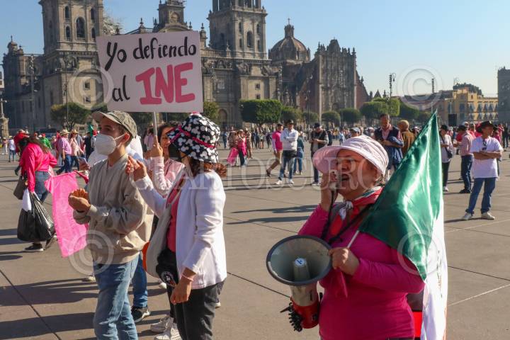 CIUDAD DE MÉXICO, 26FEBRERO2023.- Ciudadanos se concentraron en el Zócalo para sumarse a la iniciativa #ElINENoseToca, un movimiento que se opone a cambios en el Instituto Nacional Electoral (INE) promovidos por el Ejecutivo. FOTO: MOISÉS PABLO/CUARTOSCURO.COM