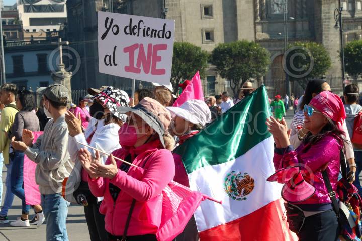 CIUDAD DE MÉXICO, 26FEBRERO2023.- Ciudadanos se concentraron en el Zócalo para sumarse a la iniciativa #ElINENoseToca, un movimiento que se opone a cambios en el Instituto Nacional Electoral (INE) promovidos por el Ejecutivo. FOTO: MOISÉS PABLO/CUARTOSCURO.COM