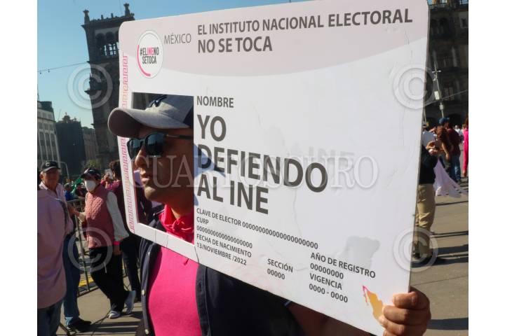CIUDAD DE MÉXICO, 26FEBRERO2023.- Ciudadanos se concentraron en el Zócalo para sumarse a la iniciativa #ElINENoseToca, un movimiento que se opone a cambios en el Instituto Nacional Electoral (INE) promovidos por el Ejecutivo. FOTO: MOISÉS PABLO/CUARTOSCURO.COM