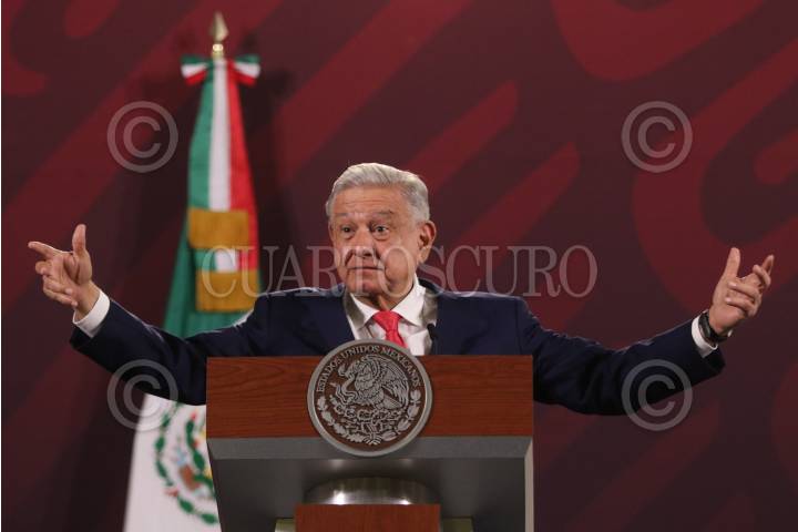 CIUDAD DE MÉXICO, 27FEBRERO2023.- Andrés Manuel López Obrador, Presidente de México, encabezó la mañanera en la fila habló sobre la marcha del día ayer que se opone al Plan B para recortar el presupuesto al INE, y del caso de Genaro García Luna. FOTO: MOISÉS PABLO/CUARTOSCURO.COM