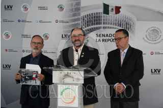 CIUDAD DE MÉXICO, 28FEBRERO2023.- Los senadores Gustavo Madero, Emilio Álvarez Icaza y Germán Martínez, integrantes del Grupo Plural, ofrecieron una conferencia de prensa en el Patio del Federalismo. FOTO: GRACIELA LÓPEZ /CUARTOSCURO.COM
