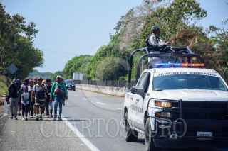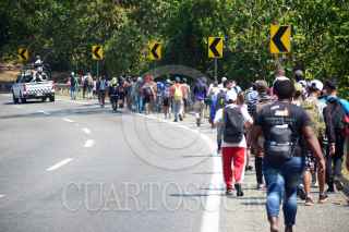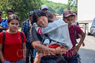 TAPACHULA, CHIAPAS, 28FEBRERO2023.- Caravana Un aproximado de 500 migrantes avanza por la carretera Costera, los caminantes salieron de Tapachula debido que las autoridades del Instituto Nacional de Migración no esta otorgando documentos de regularización migratoria. FOTO: DAMIÁN SÁNCHEZ/CUARTOSCURO.COM