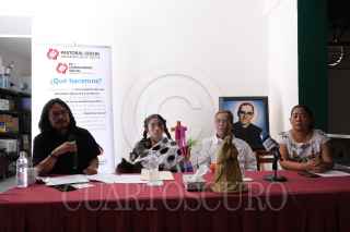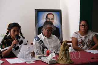 TUXTLA GUTIÉRREZ, CHIAPAS, 01MARZO2023.- A dos días de que se lleve a caso el juicio contra los asesinos de Simón Pedro, defensor de derechos humanos y ex presidente de la mesa directiva de la Sociedad Civil de las Abejas de Acteal. Su compañeros, y familiares acompañados por el Centro de Derechos Humanos Fray Bartolomé de las Casas ofrecieron una conferencia de prensa en la capital del estado para exigir al gobierno que se investigue a fondo su asesinato tanto actores materiales como intelectuales y se agoten las líneas de investigación desde su labor como defensor de derechos humanos. Durante la conferencia el padre de Simón Pedro declaró que su comunidad vive con miedo desde este lamentable hecho, y por ello exigen justicia de fondo. FOTO: ISABEL MATEOS/CUARTOSCURO.COM