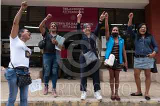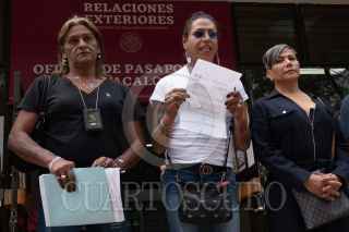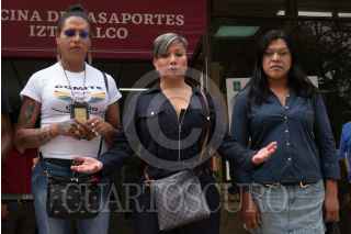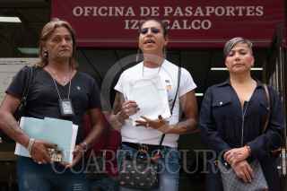 CIUDAD DE MÉXICO, 01MARZO2023.- Kenya Cuevas, presidenta Fundadora y Directora Nacional de Casa de las Muñecas Tiresias A.C, acompañada de Mahia Michelle, la diputada Sandra Luevano y mujeres trans, protestaron para exigir por la la negación de la entrega de un pasaporte a la mujer trans Mahia Michelle, debido a que las autoridades exponían que sus documentos eran falsos por su cambio de género. El acto se realizo en la Oficina de pasaportes Iztacalco. FOTO: GRACIELA LÓPEZ /CUARTOSCURO.COM