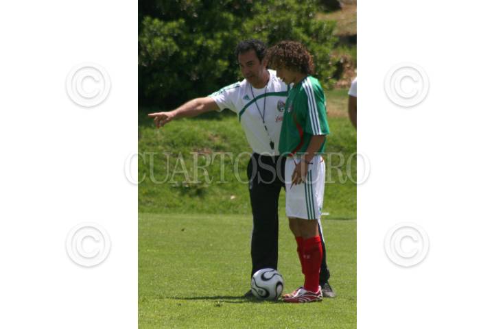 MÉXICO, D.F. 23MARZO2007.- El jugador Adolfo "Bofo" Bautista y Justino Compeán, director de la Federación Mexicana de Futbol despuès de el entrenamiento con la selección mexicana. FOTO: PAOLA HIDALGO/CUARTOSCURO.COM