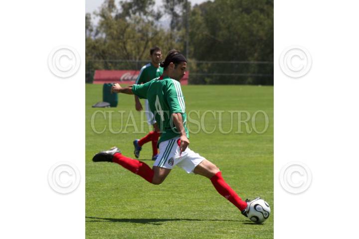 MÉXICO, D.F. 23MARZO2007.- El jugador Adolfo "Bofo" Bautista y Justino Compeán, director de la Federación Mexicana de Futbol despuès de el entrenamiento con la selección mexicana. FOTO: PAOLA HIDALGO/CUARTOSCURO.COM