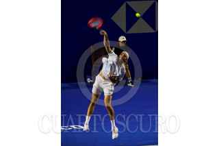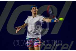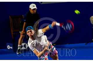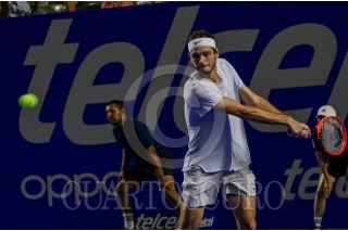 ACAPULCO, GUERRERO, 02MARZO2023.- Taylor Fritz (banda blanca en la cabeza) de los Estados Unidos venció dos sets a cero al canadiense, Denis Shapovalov (gorra azul). Con esta victoria se perfila como uno de los favoritos en el Abierto Mexicano de Tenis de Acapulco. FOTO: CARLOS ALBERTO CARBAJAL/CUARTOSCURO.COM