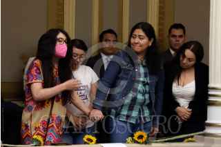 PUEBLA, PUEBLA, 02MARZO2023.- Víctimas de violencia ácida y activistas asistieron a la sesión del Congreso del estado, en la que se aprobaron las Leyes Monzón, la cual se refiere a quitar la patria potestad de un menor cuando el padre incurra en tentativa o feminicidio; y la Ley Malena o Ley Ácida, la cual penalizará con hasta 40 años de prisión los ataques con sustancias químicas a tentativa de feminicidio. FOTO: MIREYA NOVO/ CUARTOSCURO.COM