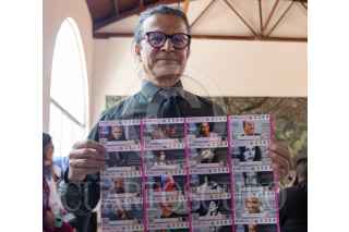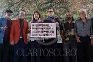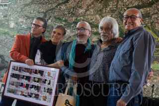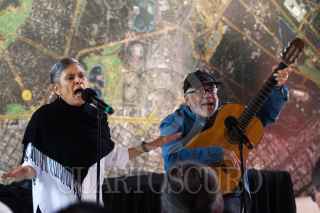 CIUDAD DE MÉXICO, 02MARZO2023.- Con la participación de los cantautores Raúl Martell, Mayra Cebreros, Ismael "Mailo" Colmenares, Guillermo Briseño y Gabino Palomarez, además de Margarita González Saravia, directora general de la Lotería Nacional para la Asistencia, se develó el billete del Sorteo Zodíaco 1606 para reconocer a los Cantautores por México, en el Salón Benito Juárez del Centro Cultural Los Pinos. FOTO: MOISÉS PABLO/CUARTOSCURO.COM