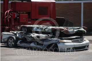 CIUDAD DE MÉXICO, 03MARZO2023.- Claudia Sheinbaum, jefa de Gobierno; Rosa Icela Rodríguez Velázquez, secretaria de Seguridad y Protección Ciudadana; Omar García Harfuch, secretario de Seguridad Ciudadana, y Clara Brugada, alcaldesa de Iztapalapa, encabezaron la demostración del programa de chatarrización de automóviles abandonados. El evento fue realizado en las instalaciones de la Subsecretaría de Control de Tránsito de la Secretaria de Seguridad Ciudadana. FOTO: MARIO JASSO/CUARTOSCURO.COM