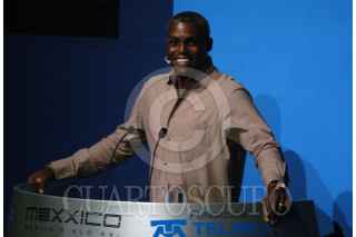 MÉXICO D.F. 27MARZO2007.- El corredor y medallista olimpico Carl Lewis durante su intervención en el foro Jovenes Construyendo México del siglo XXI, en el Auditorio de la Ciudad. FOTO: GUILLERMO PEREA/CUARTOSCURO.COM