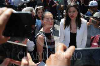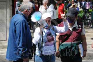CIUDAD DE MÉXICO, 05MARZO2023.- Este medio día se llevó a cabo la develación de la escultura de Dolores Jiménez y Muro, la cual fue encabezada por la jefa de gobierno, Claudia Sheinbaum y 7 gobernadoras más, previo a ello, colectivos de madres buscadores se manifestaron y pidieron que se hiciera oficial la denominación de la Glorieta de los Desaparecidos y no se removiera la figura que se encuentra en la Glorieta de las Mujeres que Luchan. FOTO: DANIEL AUGUSTO /CUARTOSCURO.COM