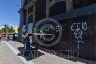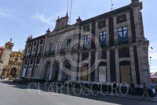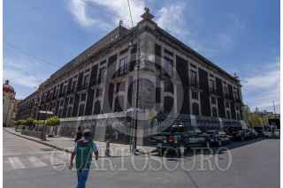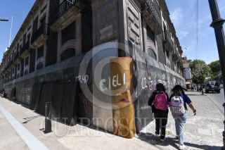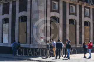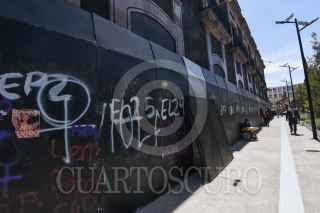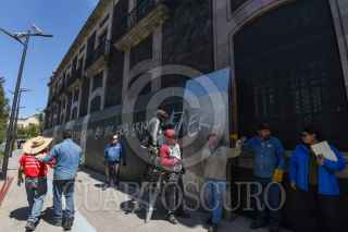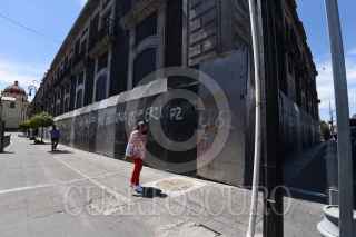 TOLUCA, ESTADO DE MÉXICO, 07MARZO2023.- El edificio de la Legislatura local y el Ayuntamiento de Toluca se blindaron con vallas metálicas y tapiaron ventanas previo a las marchas del 8M en la ciudad de Toluca. FOTO: CRISANTA ESPINOSA AGUILAR/CUARTOSCURO.COM