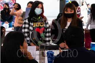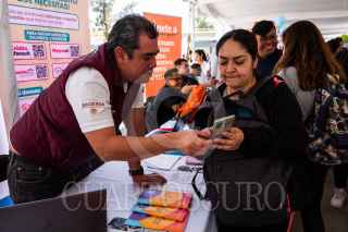 CIUDAD DE MÉXICO, 07MARZO2023.- Decenas de mujeres jóvenes y adultas, así como algunos hombres de diversas edades, acudieron a la Feria del Empleo en el Instituto de Estudios Superiores “Rosarío Castellanos” en la alcaldía Gustavo A. Madero. La iniciativa busca difundir las vacantes en que las mujeres puedan desarrollarse, crecer laboralmente y adquirir independencia financiera, esto en el marco del Día Internacional de la Mujer (8M). FOTO: GALO CAÑAS/CUARTOSCURO.COM