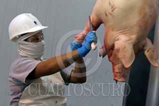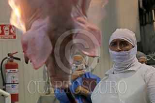 PUEBLA, PUEBLA, 07MARZO2023.- En el marco del Día Internacional de la Mujer, trabajadoras muestran el proceso de sacrificio de animales y tratamiento de la carne para ser consumida en los hogares poblanos. El rastro municipal de Puebla fue pionero en acondicionar sus instalaciones con baños y regaderas de uso exclusivo para el género femenino y así facilitar la labor de las mismas. FOTO: MIREYA NOVO/CUARTOSCURO.COM