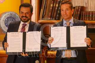 CIUDAD DE MÉXICO. 07MARZO2023.- Implementación del Programa ELSSA "Entornos laborales Seguros y Saludables Servicios Bancarios", Daniel Becker Feldman de la asociación de banqueros y Zoe Robledo director del IMSS. FOTO: VICTORIA VALTIERRA/CUARTOSCURO.COM