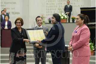 XALAPA, VERACRUZ, 07MARZO2023.-.La investigadora Graciela Elizabeth Nani González recibió la medalla “Premio Estatal a la Mujer Veracruzana 2023” por parte del Congreso del Estado y dedicó el galardón a las mujeres víctimas de violencia pidiendo además empoderar a mujeres y niñas a través de la ciencia. FOTO: YERANIA ROLÓN/CUARTOSCURO.COM