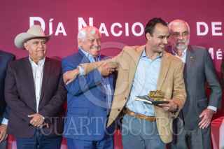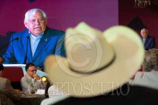 CIUDAD DE MÉXICO, 07MARZO2023.- El secretario de Agricultura, Víctor Manuel Villalobos Arámbula, encabezó el Día Nacional de la Ganadería; evento en el que la CNOG (Confederación Nacional de Organizaciones Ganaderas) otorgó un reconocimiento a la Facultad de Medicina Veterinaria y Zootecnia de la UNAM, recibido por su director Francisco Suárez Güemes. Al evento asistió también como invitado de honor el rector de la máxima casa de estudios, Enrique Graue Wiechers. FOTO: JUAN PABLO ZAMORA /CUARTOSCURO.COM