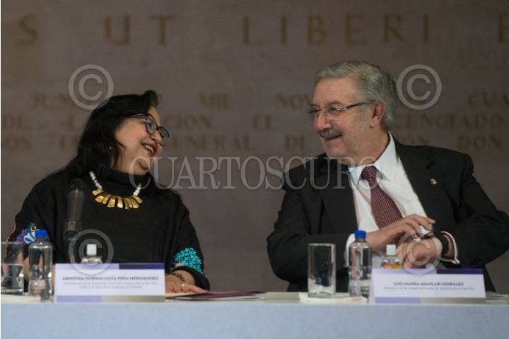 CIUDAD DE MÉXICO, 07MARZO2023.- Norma Lucía Piña, Ministra Presidenta de la Suprema Corte de Justicia de la Nación (SCJN) y del Consejo de la Judicatura Federal (CJF), y los ministros: Yasmín Esquivel Mossa; Juan Luis González; Jorge Pardo Rebolledo; Luis María Aguilar; Javier Laynez; Ana Margarita Ríos, y María Antonieta Azuela, ministra en retiro, encabezaron la ceremonia del Día del Juzgador y la Juzgadora Mexicanos, y la entrega de los premios AMIJ 2023. FOTO: MARIO JASSO/CUARTOSCURO.COM