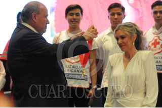 CIUDAD DE MÉXICO, 07MARZO2023.- La Cruz Roja entregó esta noche algunos reconocimientos a personas que han apoyado a su equipo a lo largo de los años, entre ellos se encuentran, la empresaria Ninfa Salinas y los empresarios Olegario Vázquez Aldir y Carlos Slim Domit. FOTO: DANIEL AUGUSTO /CUARTOSCURO.COM