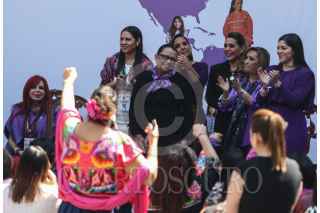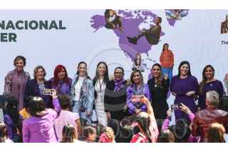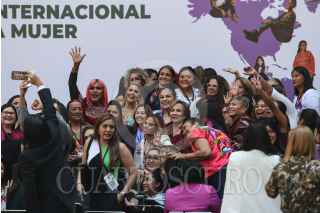 CIUDAD DE MÉXICO, 08MARZO2023.- Andrés Manuel Lopez Obrador, presidente de México acompañado de Claudia Sheinbaum Pardo, jefa de Gobierno de la Ciudad; Alejandra Frausto, secretaria de Cultura; Olga Sánchez Corder senadora mujeres del gabinete, gobernadoras y funcionarias se juntaron para conmemorar el 8 de marzo día de la mujer que se llevó a cabo en Palacio Nacional. FOTO: ANDREA MURCIA/ CUARTOSCURO.COM