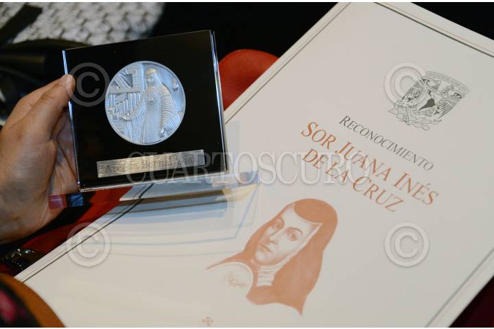 CIUDAD DE MÉXICO, 08MARZO2023.- Por sus aportaciones a la docencia, la investigación, al arte, al conocimiento y a la ciencia, 83 destacadas académicas de la UNAM recibieron el Reconocimiento Sor Juana Inés de la Cruz, de manos del rector Enrique Graue Wiechers. En nombre de la Universidad Nacional, la coordinadora de Humanidades, Guadalupe Valencia García, expresó que Sor Juana se asoma en la mirada de cada una de las galardonadas: en sus historias, hallazgos, descubrimientos y resultados científicos, pues en esta casa de estudios está su huella, se sigue su rastro, se le evoca y nos maravillamos con su pensamiento hecho palabras. En el Teatro Juan Ruiz de Alarcón, Valencia García también subrayó: en la Universidad Nacional “defendemos el derecho a pensar diferente y a esgrimir argumentos como tú lo hiciste, a debatir y a deliberar, a defender la autonomía de una institución que sólo en dicha condición puede garantizar nuestra propia libertad”. FOTO: UNAM/CUARTOSCURO.COM