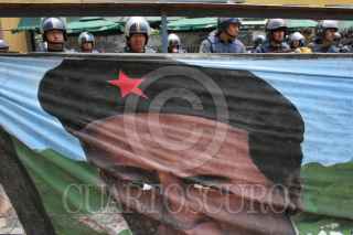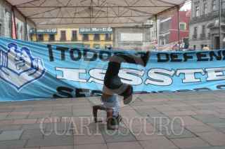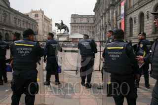 MÉXICO, D.F., 28MARZO2007.- Lucio vacia la plaza Tolsa, a donde algunos manifestantes seguian exigiendo no a las reformas del ISSTE. Mientras tanto, miembros del cuerpo de seguridad pública del D.F. siguen resguardando el Senado de la República. FOTO: EZEQUIEL TLAXCALA/ CUARTOSCURO.COM