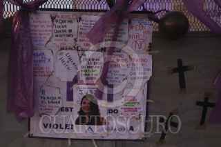 MÉRIDA, YUCATÁN, 08MARZO2023.- Esta tarde la señora Ligia Canto Lugo acompañada de feministas y familiares se manifestaron en el monumento a la patria exigiendo justicia por el asesinato de su hija en mayo del año 2018. Autoridades del municipio de Mérida resguardan el monumento ante las manifestaciones por el Día Internacional de la Mujer en la entidad. FOTO: MARTÍN ZETINA/CUARTOSCURO.COM