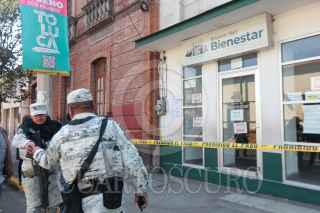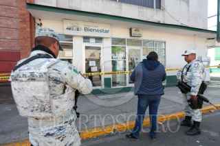 TOLUCA, ESTADO DE MÉXICO, 09MARZO2023.- Roban Banco del Bienestar ubicado en avenida de la Independencia esquina con Humboldt en la ciudad de Toluca, de acuerdo con reportes policiacos los asaltantes rompieron un vidrio y forzaron una chapa, el lugar fue resguardado por elementos de la Guardia Nacional. FOTO: CRISANTA ESPINOSA AGUILAR /CUARTOSCURO.COM
