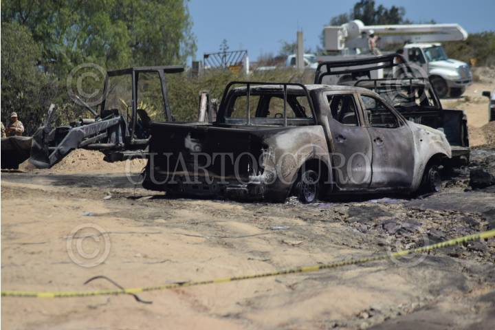 TULA DE ALLENDE, HIDALGO, 09MARZO2023.- Continúan los trabajos en la zona de Bominthzá, en donde se registró un incendio de un ducto de Petróleos Mexicanos (Pemex), con saldo de tres empleados de la petrolera lesionados por quemaduras de segundo y tercer grado. Los trabajadores realizaban la reparación del ducto tras el hallazgo de una toma clandestina cuando sobrevino el estallido que calcinó además dos camionetas de Pemex, un vehículo particular y una retroexcavadora. FOTO: FRANCISCO VILLEDA/CUARTOSCURO.COM