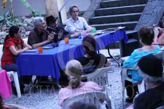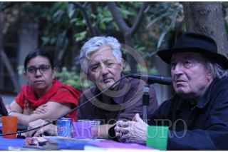 CUERNAVACA, MORELOS, 09MARZO2023.- Serge Pey, escritor francés, presento su libro El Tesoro de la Guerra de España, en el Museo La Casona Spencer, dentro de las actividades de La Cartonera Editorial por su 15 aniversario. Acompañaron al escritor, poeta y artista plástico (Toulouse, Francia, 1950) el traductor de la obra, Rafael Segovia y los editores Nayeli Sánchez y Dany Hurpin. FOTO: MARGARITO PÉREZ RETANA/CUARTOSCURO.COM