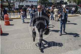 CIUDAD DE MÉXICO, 10MARZO2023.- Miguel Ontiveros Alonso, y Alejandro Rojas abogados en defensa del ex director de Petróleos Mexicanos (Pemex) Emilio Lozoya, durante su llegada a los juzgados al Centro de Justicia Penal del Reclusorio Norte en donde está programada una audiencia por el caso Agronitrogenados. FOTO: MARIO JASSO/CUARTOSCURO.COM