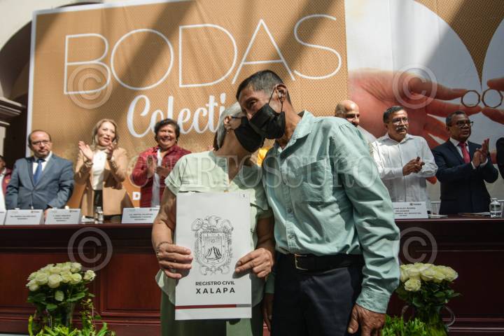 XALAPA, VERACRUZ, 10MARZO2023.- El ayuntamiento de Xalapa realizó bodas colectivas en el patio central del recinto. Al menos 40 parejas unieron sus vidas. Hubo dos parejas del mismo sexo y otras dos discapacitadas. FOTO: YERANIA ROLÓN/CUARTOSCURO.COM