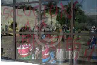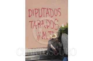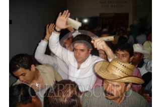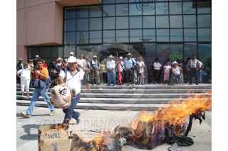 CHILPANCINGO, GUERRERO28MARZO2007.- Bloqueo y protesta afuera del Congreso local por parte de integrantes de la CERP-CETEG y de la Asamblea Popular de los Pueblos de Guerrero donde quemaron muñecos que representaban las figuras del lider de la seccion XIV del SNTE Jose Natividad Calixto Diaz, de la lider del SNTE a nivel nacional Elba Esther Gordillo Morales y del presidente Felipe Calderón esto para exigir un alto a la reformas en contra de la ley del ISSSTE y solucion a diversas demandas. FOTO: OSCAR ALVARADO/CUARTOSCURO.COM
