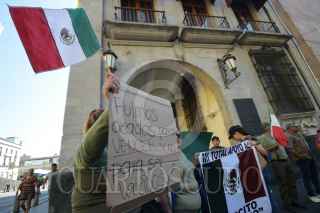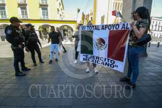 XALAPA, VERACRUZ, 12MARZO2023.- Ex militares y familiares de elementos en activo del Ejército se manifestaron junto al Palacio de Gobierno en Xalapa, criticando la detención de cuatro militares que están sujetos a proceso en el fuero militar por la muerte de cinco civiles en Tamaulipas. FOTO: YERANIA ROLÓN/CUARTOSCURO.COM