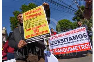 TOLUCA, ESTADO DE MÉXICO, 14MARZO2023.- Vecinos de la colonia Universidad en Toluca realizaron una suspensión ciudadana de los parquímetros virtuales instalados en la avenida Benito Juárez después de no llegar a un acuerdo con el ayuntamiento de Toluca, ya que se ven afectados sobre todo los negocios. FOTO: CRISANTA ESPINOSA AGUILAR /CUARTOSCURO.COM