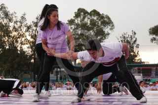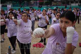 CIUDAD DE MÉXICO, 14MARZO2023.- Con el lema "Nos quitaron el miedo, nos crecieron alas", cientos de mujeres y niños acudieron a la clase masiva de Defensa Personal con Artes Marciales mixtas para eliminar la violencia de género, en la que Clara Brugada, alcaldesa de Iztapalapa, inauguró el evento. El acto se realizó en la Utopía Santa Cruz Meyehualco. FOTO: GRACIELA LÓPEZ /CUARTOSCURO.COM